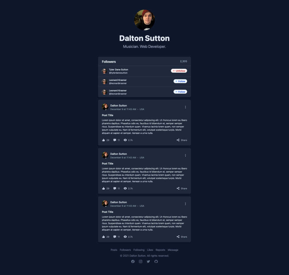Tailwind CSS Simple Profile Template